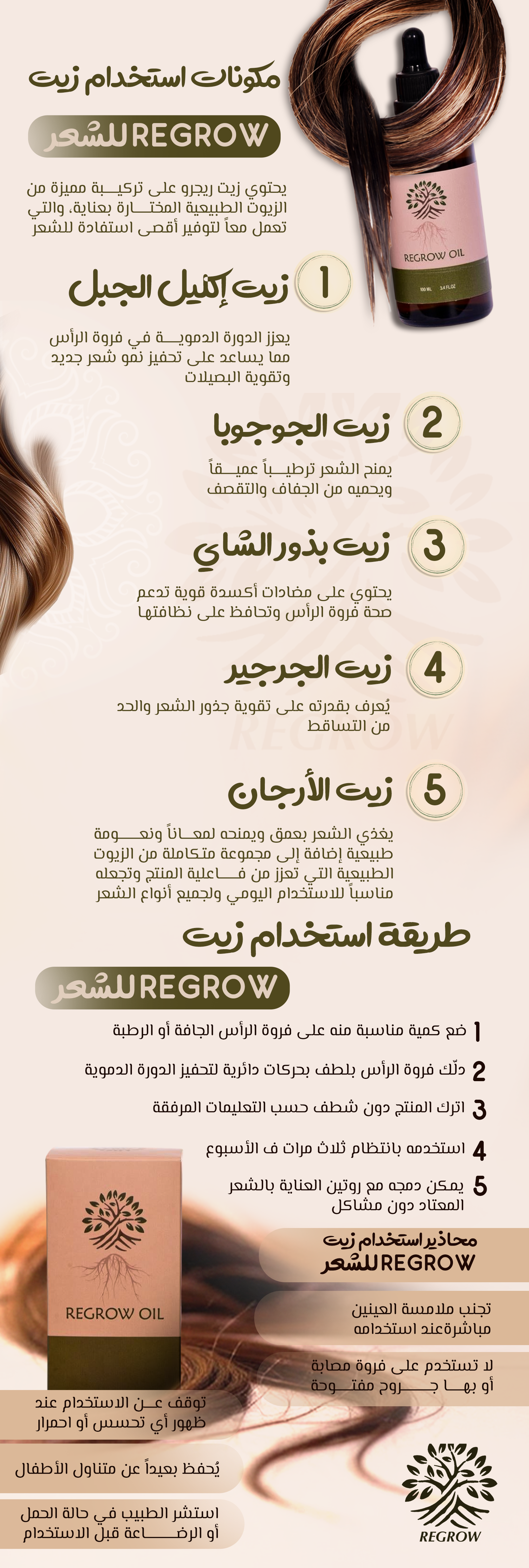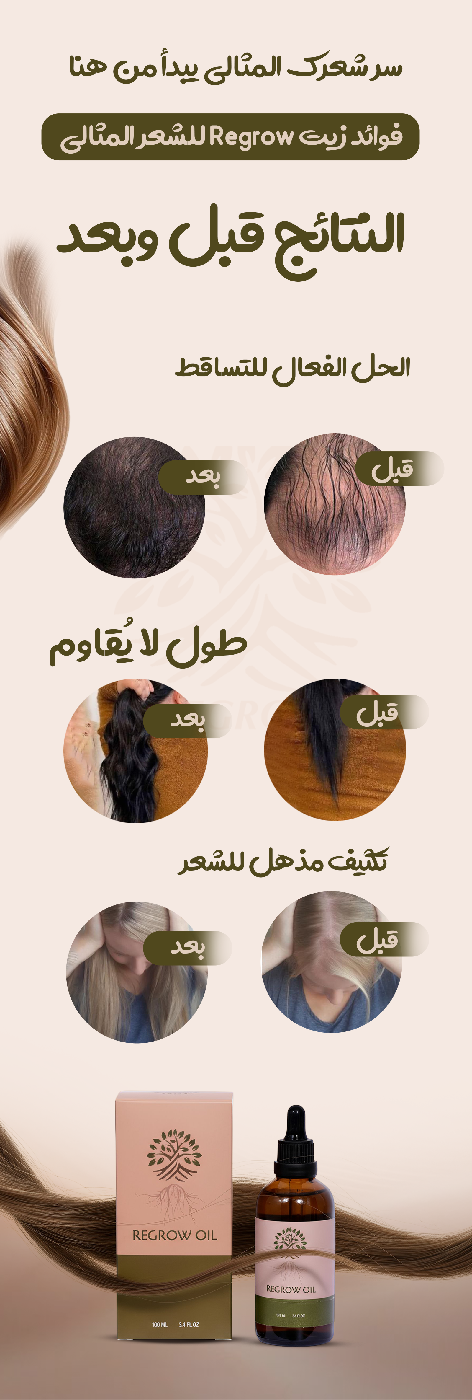 احصل على شعر صحي وقوي مع REGROW وابدأ رحلة نمو شعرك الطبيعي بثقة.